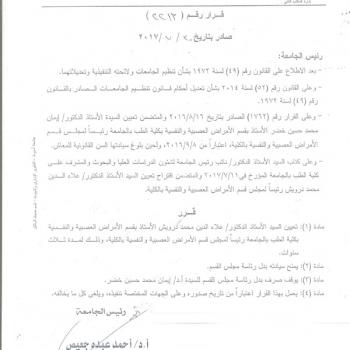 Continue to Appointment of Dr. Alaa El-Din Mohamed Darwish, the Professor of Neurology and Psychiatry as as the Department Board Chairman of Neurology and Psychiatry Department