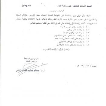 the Non-Final List of Applied Staff Members for the position of Faculty Dean