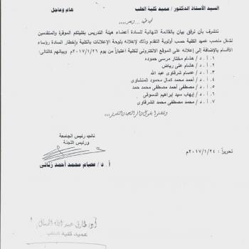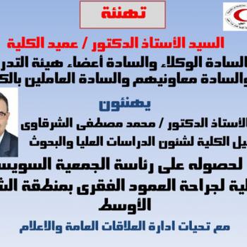 Congratulations to Prof. Dr. Mohammad Mostafa El-Sharkawi the Vice-Dean of Postgraduate Studies and Research