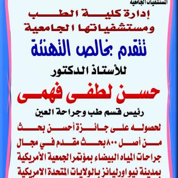 Congratulations to Prof. Dr. Hasan Lotfi Fahmi the Ophthalmology Head of Department