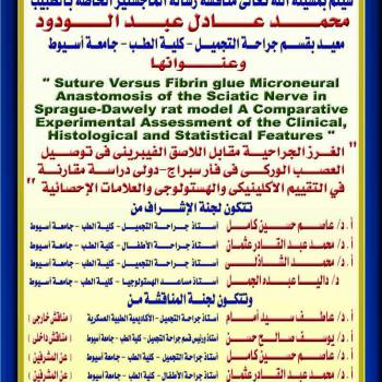 Ph.D. Master of doctor / Ahmed Gamal Mohamed Abdel-Mohsen the Demonstrator of Plastic Surgery