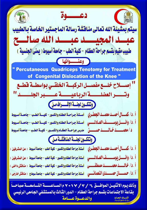 Ph.D. Master of doctor Abdel-Majid Abdullah Saleh the doctor of Orthopedic Surgery and Traumatology Department 28 February 2017 Ph.D. Master of doctor Abdel-Majid Abdullah Saleh the doctor of Orthopedic Surgery and Traumatology Department