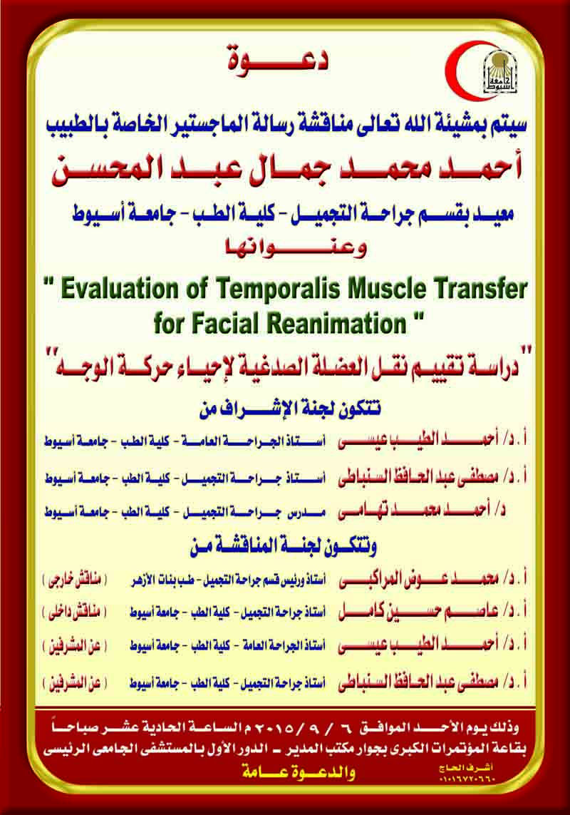Ph.D. Master of doctor / Ahmed Gamal Mohamed Abdel-Mohsen the Demonstrator of Plastic Surgery 3 September 2015 Ph.D. Master of doctor / Ahmed Gamal Mohamed Abdel-Mohsen the Demonstrator of Plastic Surgery