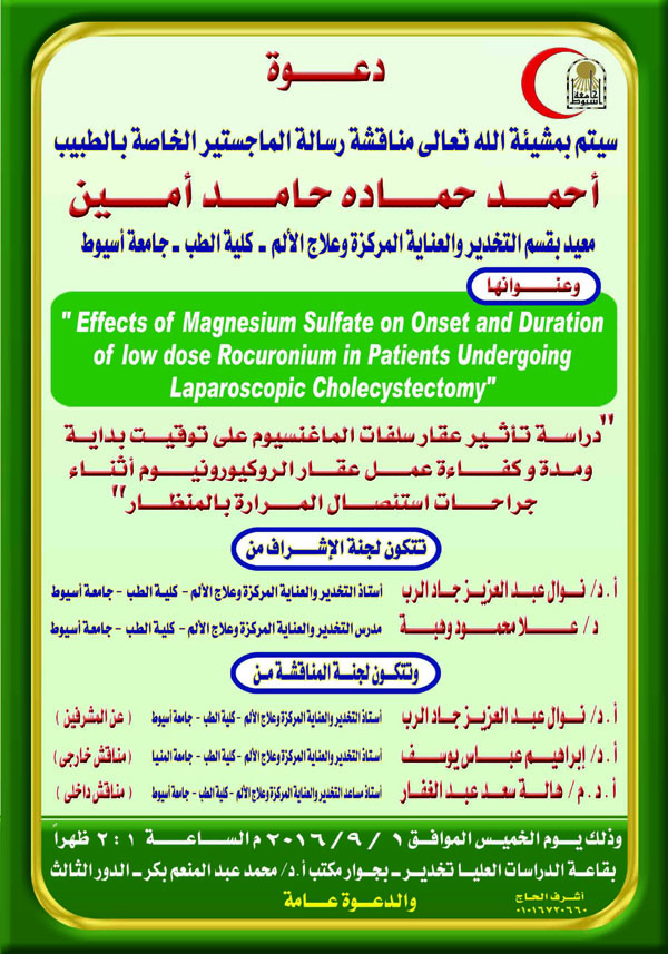 Ph.D. Master of doctor Ahmed Hamada Hamed Amin the doctor of Anesthesia and Intensive Care Department 23 August 2016 Ph.D. Master of doctor Ahmed Hamada Hamed Amin the doctor of Anesthesia and Intensive Care Department