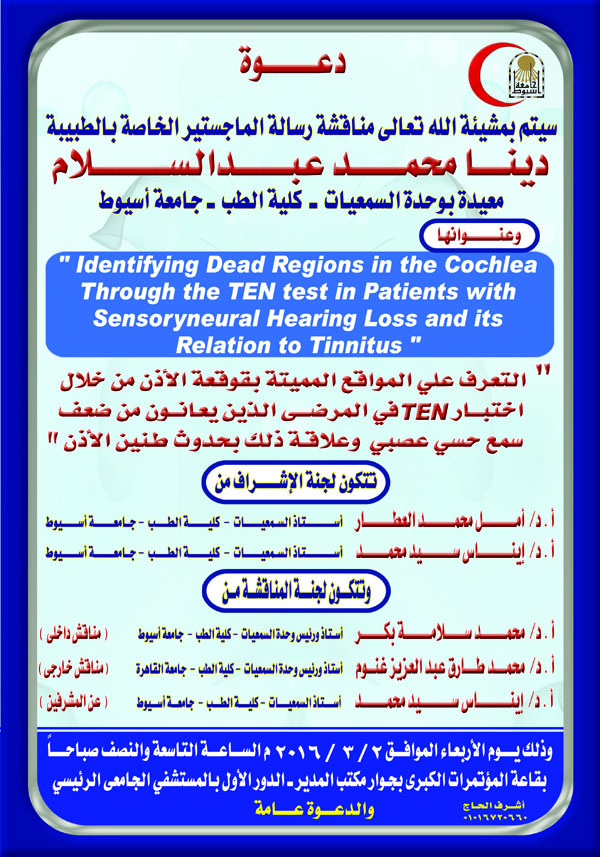 Ph.D. Master of doctor / Dina Mohamed Abdel-Salam the Demonstrator of Ear, Nose and Throat Department 1 March 2016 Ph.D. Master of doctor / Dina Mohamed Abdel-Salam the Demonstrator of Ear, Nose and Throat Department