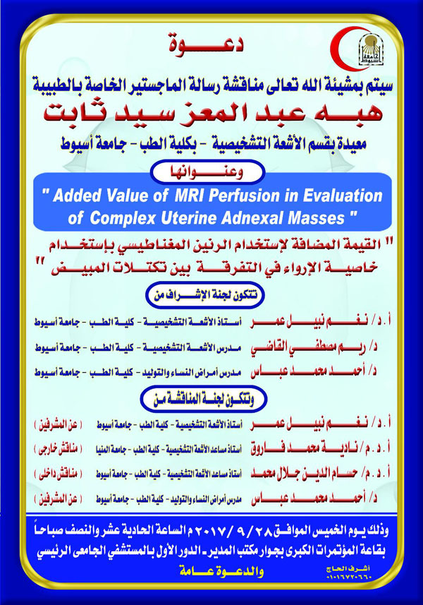 Ph.D. Master of doctor / Heba Abdel-Moez Sayed Thabet the Assistant Lecturer of Diagnostic Radiology 26 September 2017 Ph.D. Master of doctor / Heba Abdel-Moez Sayed Thabet the Assistant Lecturer of Diagnostic Radiology