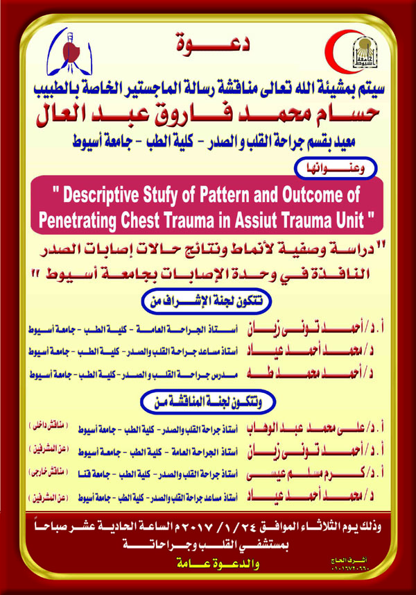 Ph.D. Master of doctor / Hosam Mohamed Farouq Abdel-Aal the doctor of Cardio-Thoracic Surgery 23 January 2017 Ph.D. Master of doctor / Hosam Mohamed Farouq Abdel-Aal the doctor of Cardio-Thoracic Surgery