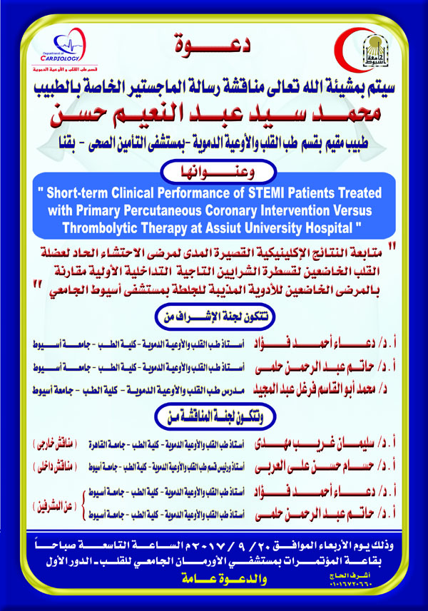 Ph.D. Master of doctor / Mohamed Sayed Abdel-Naiem Hasan the Assistant Lecturer of Cardiology 10 September 2017 Ph.D. Master of doctor / Mohamed Sayed Abdel-Naiem Hasan the Assistant Lecturer of Cardiology