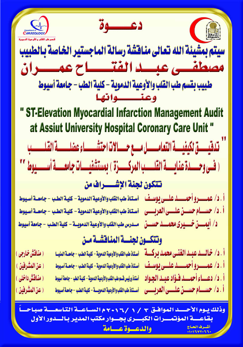 Ph.D. Master of doctor / Mostafa Abdel-Fattah Omran the Doctor of Cardiology Department 2 January 2016 Ph.D. Master of doctor / Mostafa Abdel-Fattah Omran the Doctor of Cardiology Department