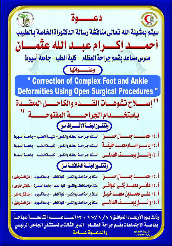 Ph.D. Thesis of doctor / Ahmed Ikram Abdullah Othman the Assistant Lecturer of Orthopedic Surgery and Traumatology 9 January 2017 Ph.D. Thesis of doctor / Ahmed Ikram Abdullah Othman the Assistant Lecturer of Orthopedic Surgery and Traumatology