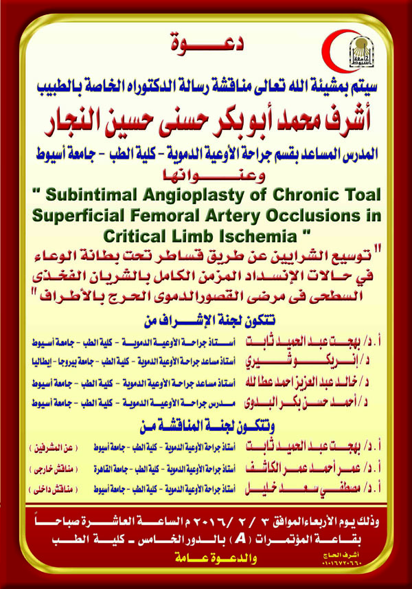 Ph.D. Thesis of doctor / Ashraf Mohamed Abo-Bakr Hosny Hussain Elnaggar the Assistant Lecturer of Vascular Surgery 2 February 2016 Ph.D. Thesis of doctor / Ashraf Mohamed Abo-Bakr Hosny Hussain Elnaggar the Assistant Lecturer of Vascular Surgery