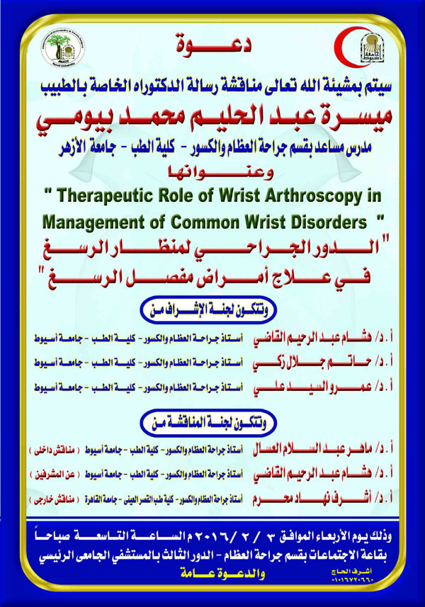 Ph.D. Thesis of doctor / Maysara Abdel-Haleem Mohamed Baiomy the Assistant Lecturer of Orthopedic Surgery and Traumatology 31 January 2016 Ph.D. Thesis of doctor / Maysara Abdel-Haleem Mohamed Baiomy the Assistant Lecturer of Orthopedic Surgery and Traumatology