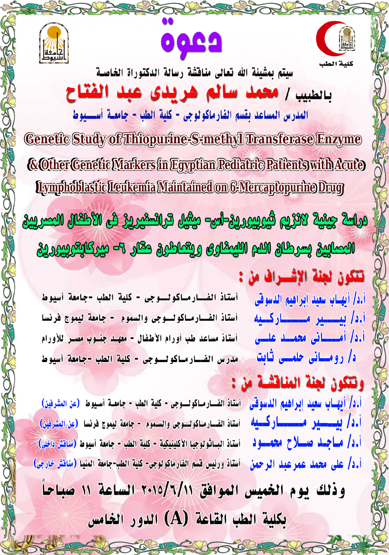 Ph.D. Thesis of doctor / Mohamed Salem Haridy Abdel-Fattah the Assistant Lecturer of Pharmacology 2 June 2015 Ph.D. Thesis of doctor / Mohamed Salem Haridy Abdel-Fattah the Assistant Lecturer of Pharmacology