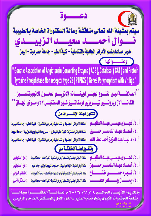 Ph.D. Thesis of doctor Nawal Ahmed Said Alzobaidy the Assistant Lecturer of Dermatology, Venereology and Andrology 6 November 2016 Ph.D. Thesis of doctor Nawal Ahmed Said Alzobaidy the Assistant Lecturer of Dermatology, Venereology and Andrology
