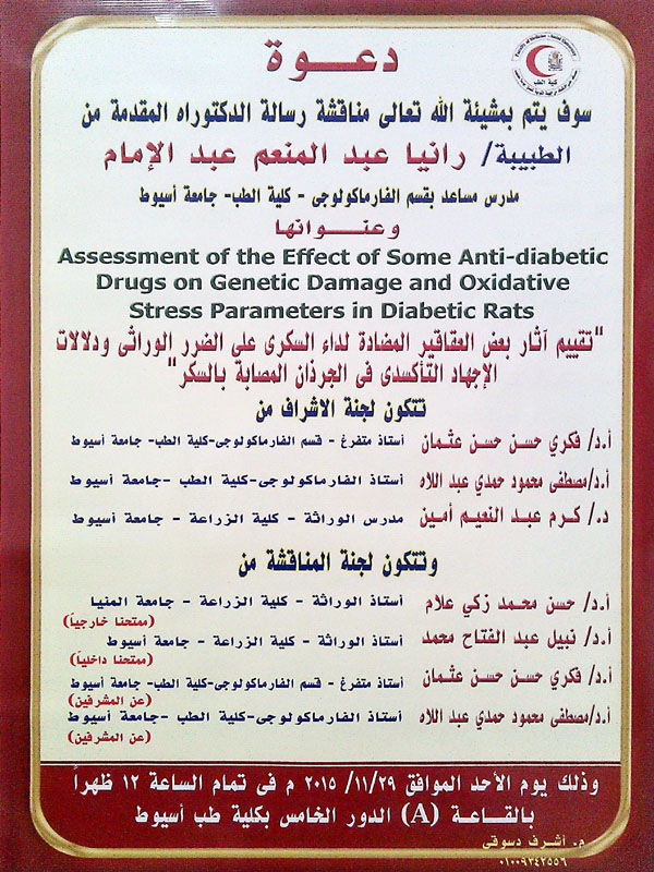 Ph.D. Thesis of doctor / Rania Abdel-Moniem Abdel-Emam the Assistant Lecturer of Pharmacology 29 November 2015 Ph.D. Thesis of doctor / Rania Abdel-Moniem Abdel-Emam the Assistant Lecturer of Pharmacology