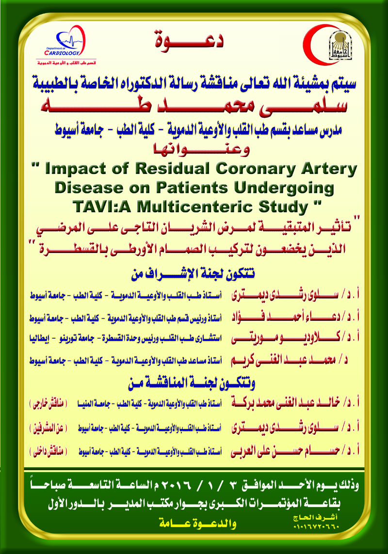 Ph.D. Thesis of doctor / Salma Mohamed Taha the Assistant Lecturer of Cardiovascular Medicine 3 January 2016 Ph.D. Thesis of doctor / Salma Mohamed Taha the Assistant Lecturer of Cardiovascular Medicine