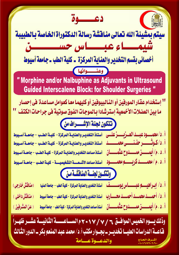 Ph.D. Thesis of doctor / Shimaa Abbas Hasan the Assistant Lecturer of Anesthesia and Intensive Care 5 July 2017 Ph.D. Thesis of doctor / Shimaa Abbas Hasan the Assistant Lecturer of Anesthesia and Intensive Care