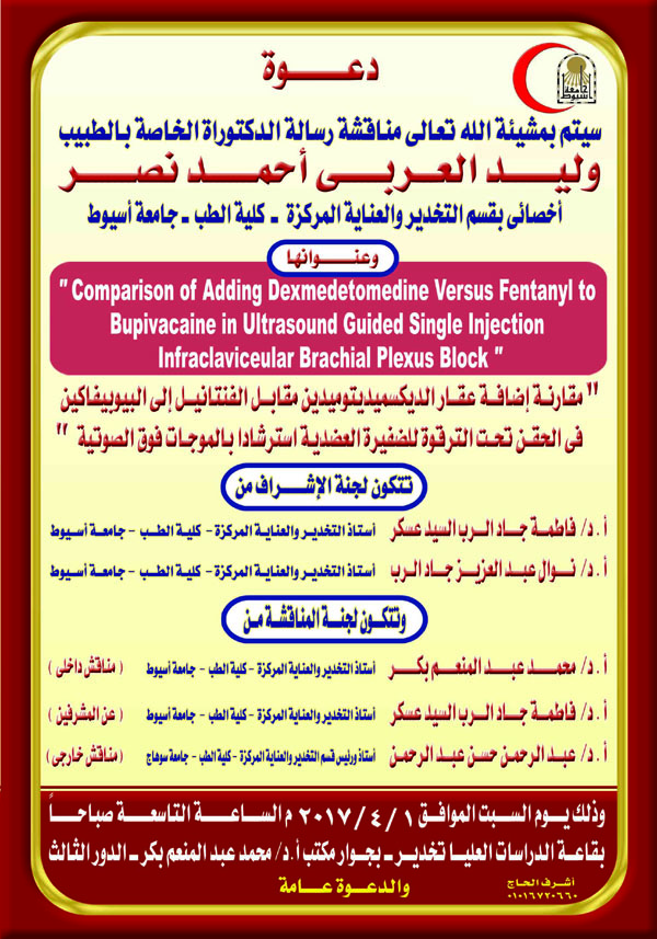 Ph.D. Thesis of doctor Waleed Elarabi Ahmed Nasr the Assistant Lecturer of Anesthesia and Intensive Care 30 March 2017 Ph.D. Thesis of doctor Waleed Elarabi Ahmed Nasr the Assistant Lecturer of Anesthesia and Intensive Care