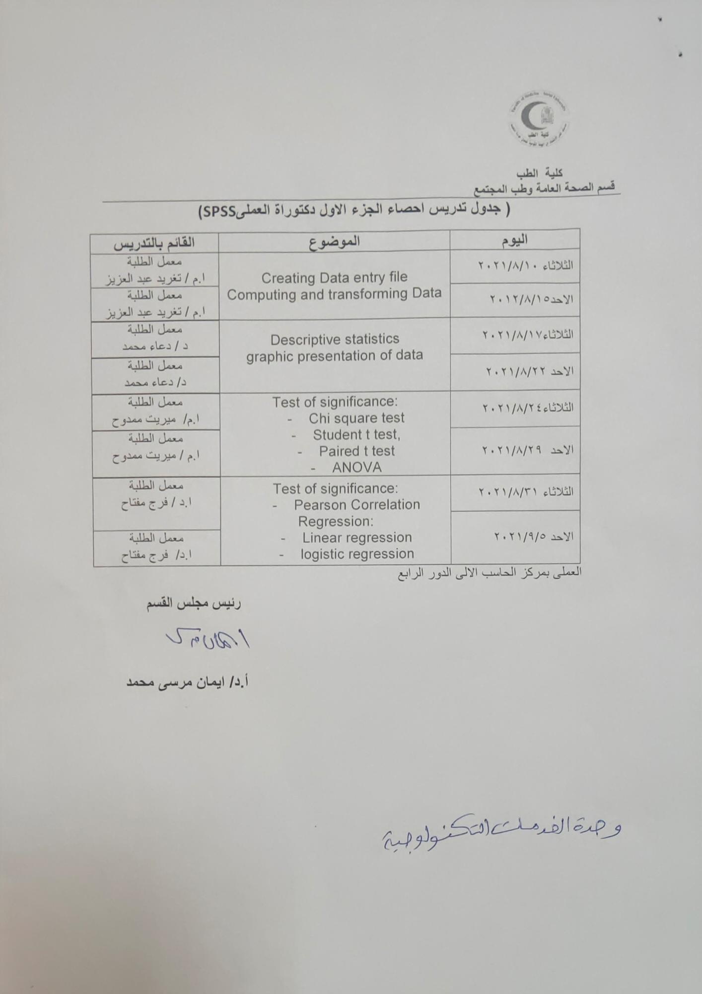 Teaching schedule of statistics for the first part of the Practical Ph.D. spss - Department of Public Health 3 August 2021 Teaching schedule of statistics for the first part of the Practical Ph.D. spss - Department of Public Health