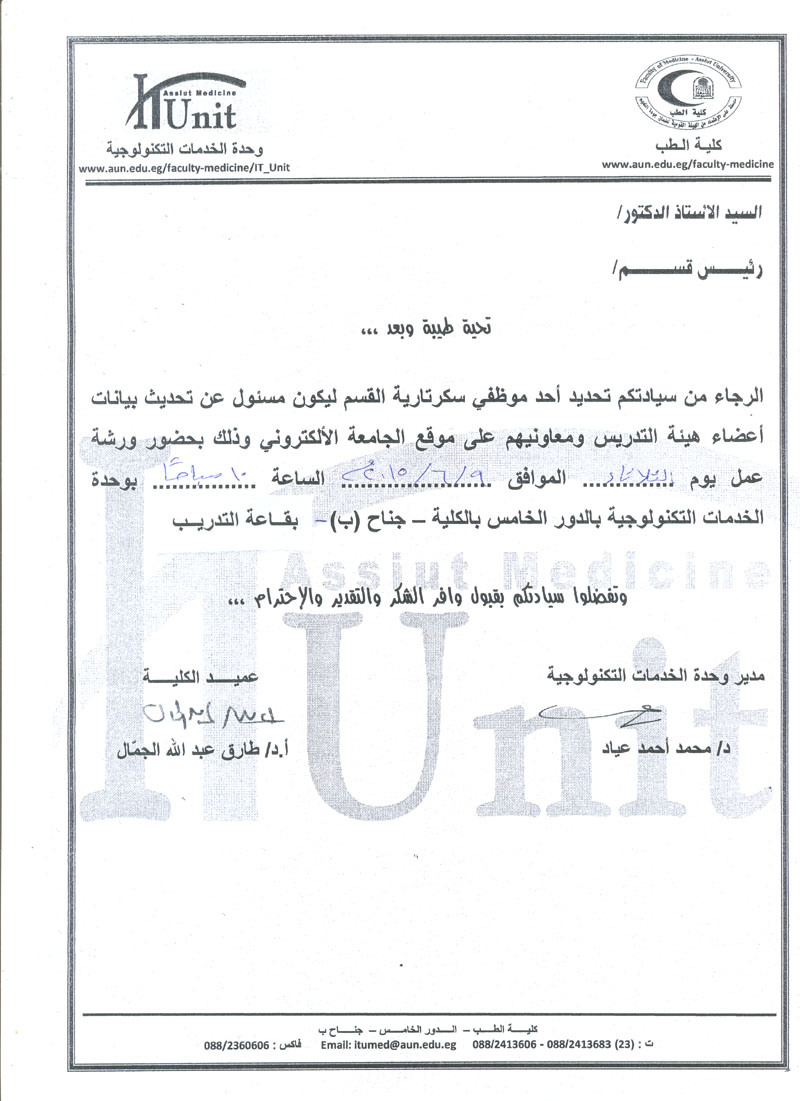 A Workshop to train the Department's Secretaries to update the Staff Members Data 3 June 2015 A Workshop to train the Department's Secretaries to update the Staff Members Data