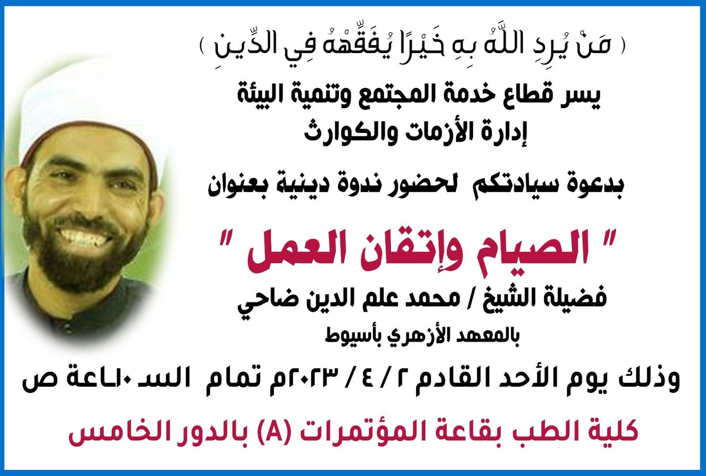 Invitation to attend the religious symposium entitled "Fasting and Perfection of Work"