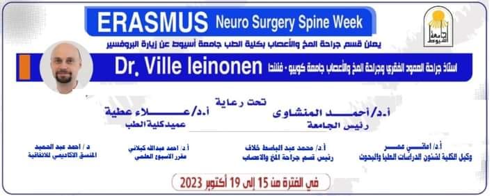 وذلك في إطار اتفاقية التبادل الثقافي بين جامعة أسيوط وجامعة شرق فنلندا و بحضور الخبير الفنلندي ville leinonen أستاذ جراحة العمود الفقري وجراحة المخ والأعصاب بجامعة كوبيو - فنلندا