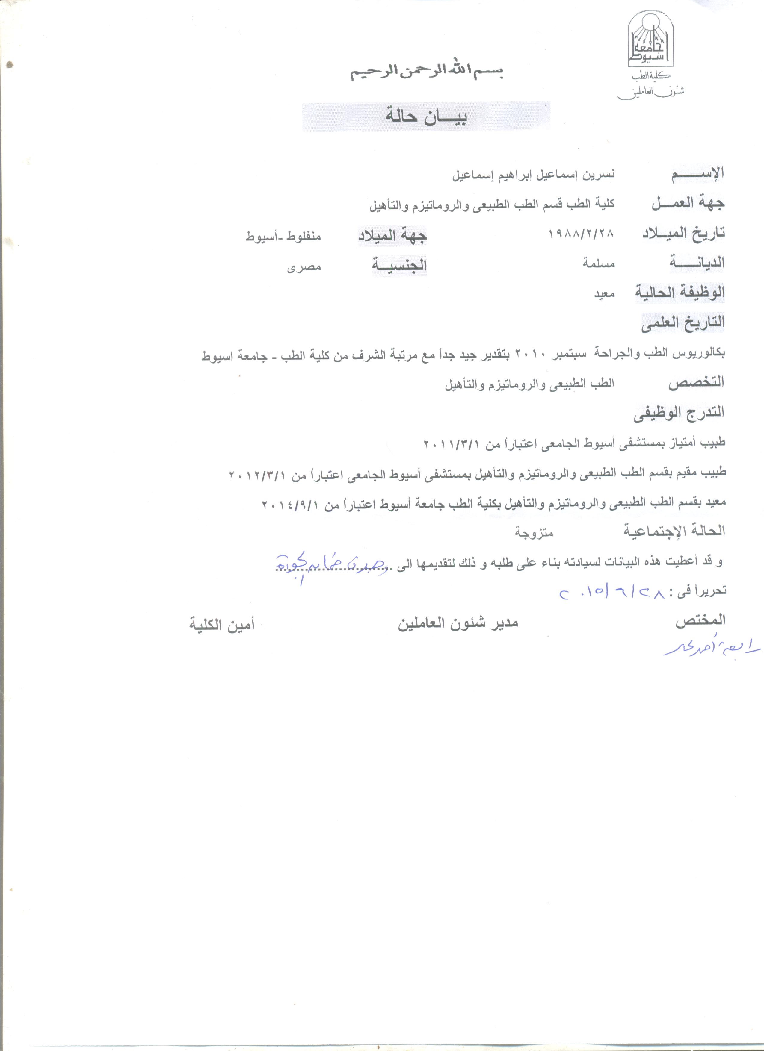 Assistant Lecturer Faculty of Medicine, ِِAssiut University , 2016