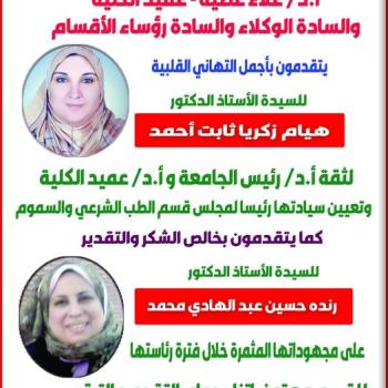 Congratulations to Prof. Dr. Hiyam Zakaria Thabet - Chair of the Board of the Department of Forensic Medicine and Clinical Toxicology - Faculty of Medicine