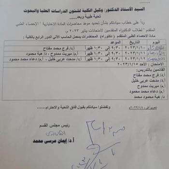 السيد الاستاذ الدكتور /عميد الكلية
