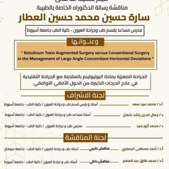An invitation to attend the doctoral defense of Dr. Sarah Hussein Mohamed Hussein Al-Attar - Assistant Lecturer, Department of Ophthalmology