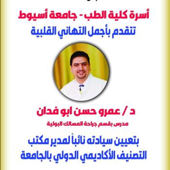 Congratulations to Dr. Amr Hassan Abu Feddan for his appointment as Deputy Director of the International Academic Classification Office at the University