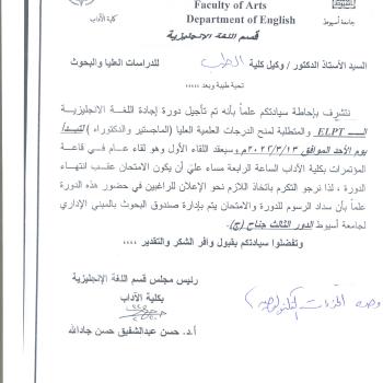 Postponing the English language course for granting master’s and doctoral degrees to 13-3-2022