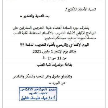 تحت رعاية أ.د/ طارق الجمال - رئيس الجامعة و أ.د/ علاء عطية عميد كلية الطب و أ.د/ أماني عمر - وكيل الكلية لشئون التعليم والطلاب