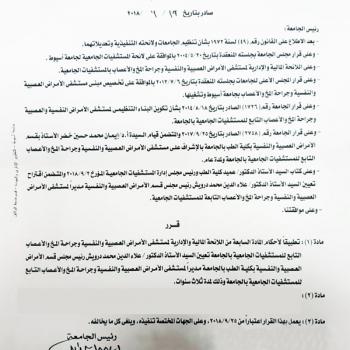 Appointing Prof. Alaa El-Din Mohamed Darwish, Chairman of the Neurology and Psychiatry Department, Director of Neurology, Psychiatry and Neurosurgery Hospital
