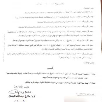 Appointment of Prof. Osama Ahmed Farouq Mohamed, the Professor of Orthopedic Surgery and Traumatology as Executive Director of Injury and Emergency Hospital Project
