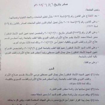 Nominating of Prof. Hanan Gamal-Eldin Mostafa Morsy as Clinical Oncology and Nuclear Medicine Head of the Department