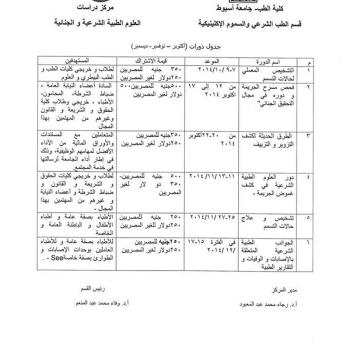 Courses Schedule of Criminal and Forensic Medical Science Study Center