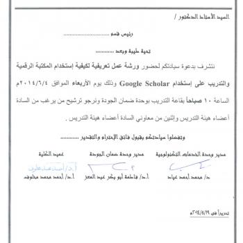 A workshop in Quality Assurance Unit stadium on the fifth floor will hold in the period from 31/05/2014 to 03/06/2014 Entitled Internal Audit for testing lab according to ISO…