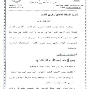 The Weekly Scientific Meeting of Ophthalmology Department will hold on Sunday 27/04/2014 in the Meeting Room sixth floor of the department at 11 am and includes Dr. Asmaa omarCase…