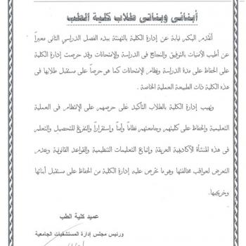 Message from Prof. Dr. Ahmad Makhlouf, the Faculty Dean to the Students