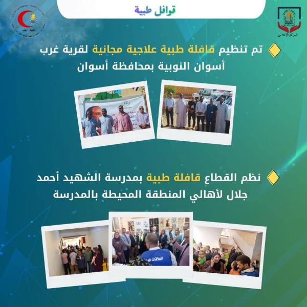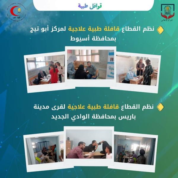 وأكد الأستاذ الدكتور علاء عطية على أن الكلية تمضي بخطى واثقة نحو تعزيز مسؤوليتها المجتمعية، مشدداً على أن الدور التوعوي والعلاجي للكلية تجاوز أسوار الحرم الجامعي ليصل إلى المناطق الأكثر احتياجاً، موضحا أن العام الماضي شهد إطلاق سلسلة من القوافل الطبية المتكاملة التي جابت محافظات (أسوان، والوادي الجديد)، بالإضافة إلى القرى التابعة لمحافظة أسيوط، حيث نجحت في تقديم خدمات التشخيص والعلاج للمواطنين، مشيرا إلى أن القطاع لم يكتفِ بالجانب العلاجي، بل حرص على إرساء ثقافة الوقاية من خلال تنظيم "أيام صحية تثقيفية"، وذلك بهدف رفع الوعي الصحي المجتمعي ودعم المبادرات القومية للصحة العامة.
