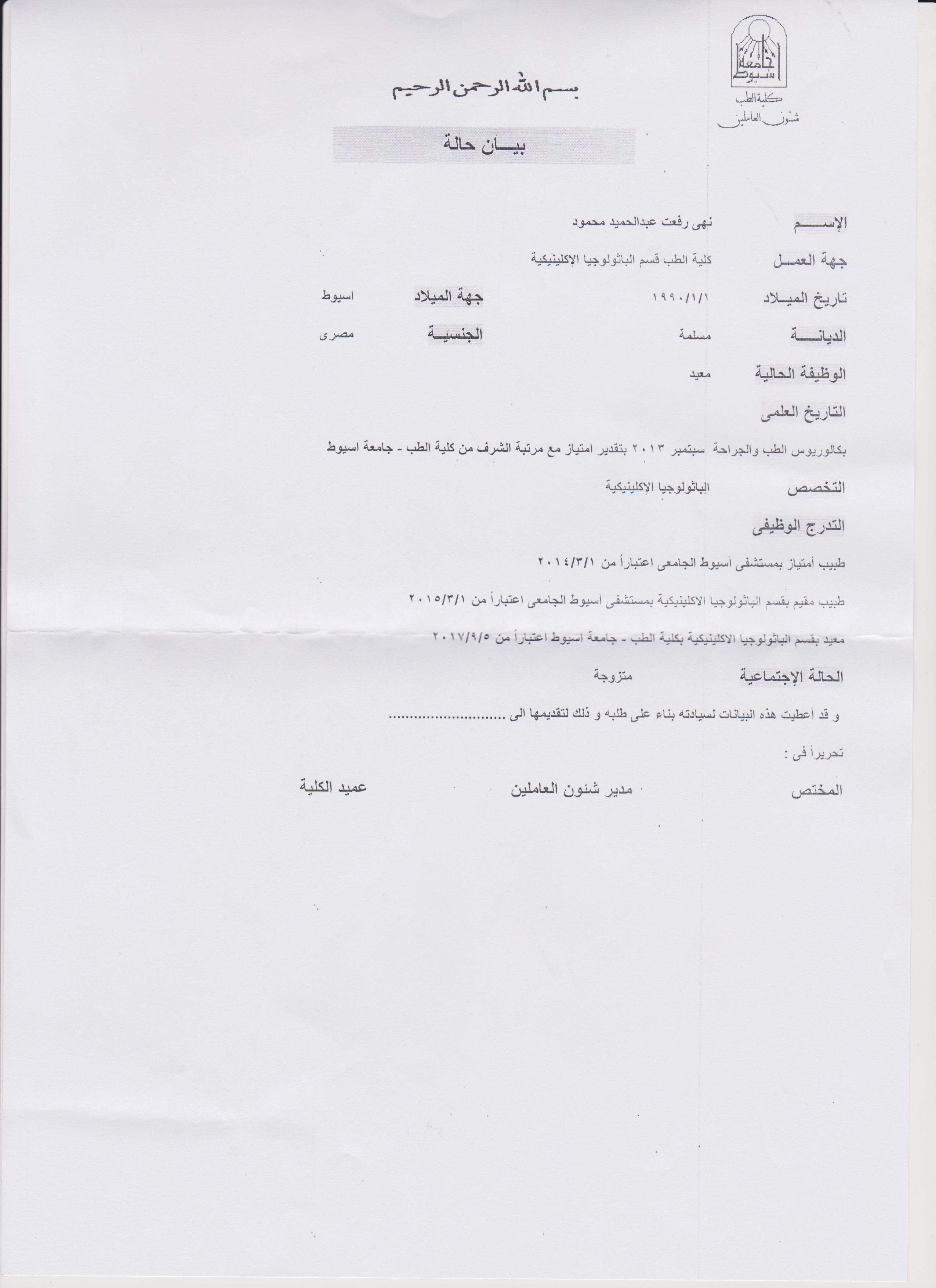 Demonstrator Faculty of Medicine, ِِAssiut University , 2017