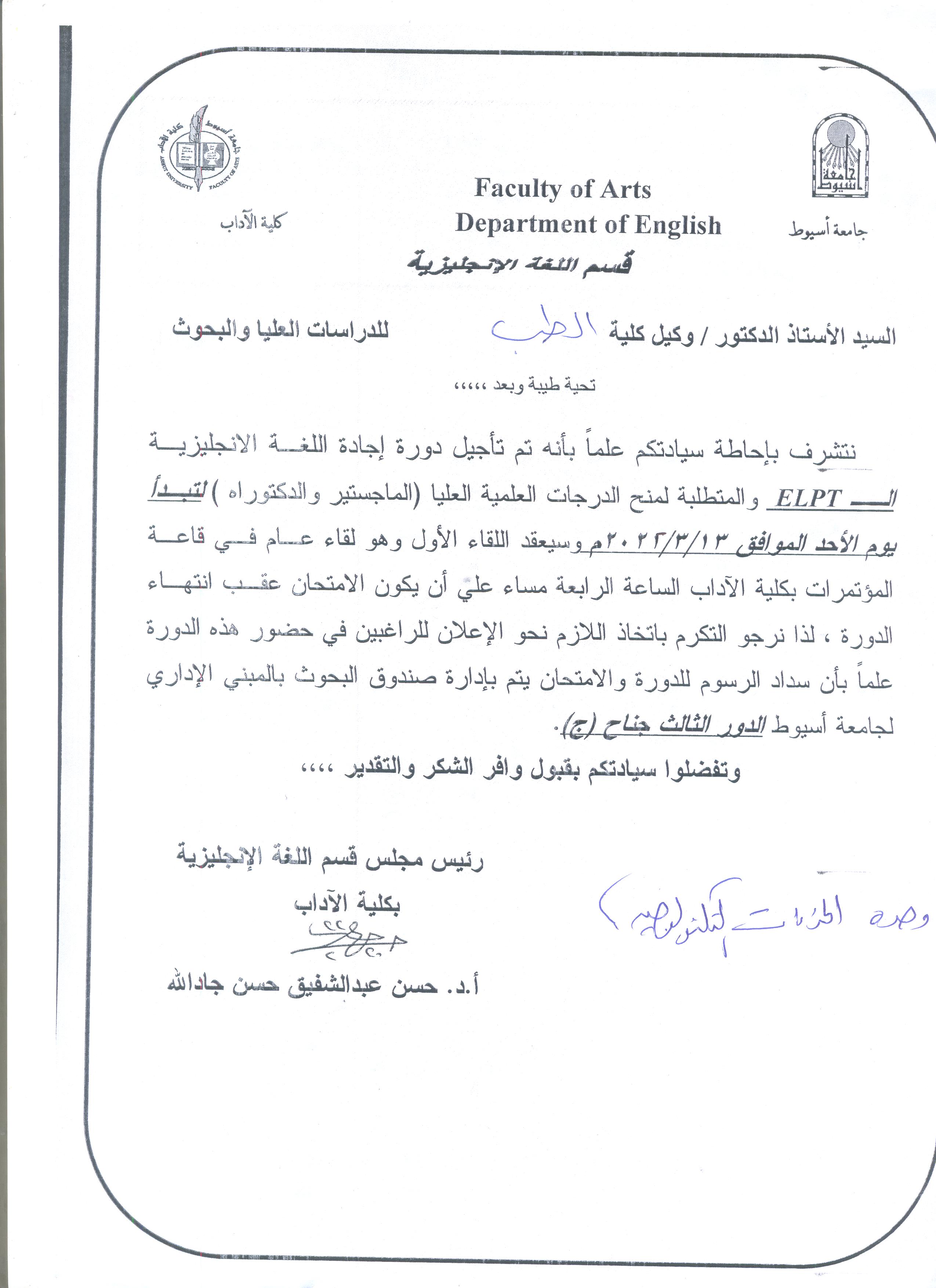 Postponing the English language course for granting master’s and doctoral degrees to 13-3-2022 8 March 2022