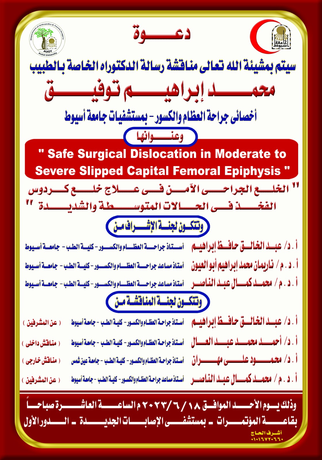 Seminar Doctor / Mohamed Ibrahim Tawfik - Orthopedics and Traumatology Specialist - Assiut University Hospitals 15 June 2023