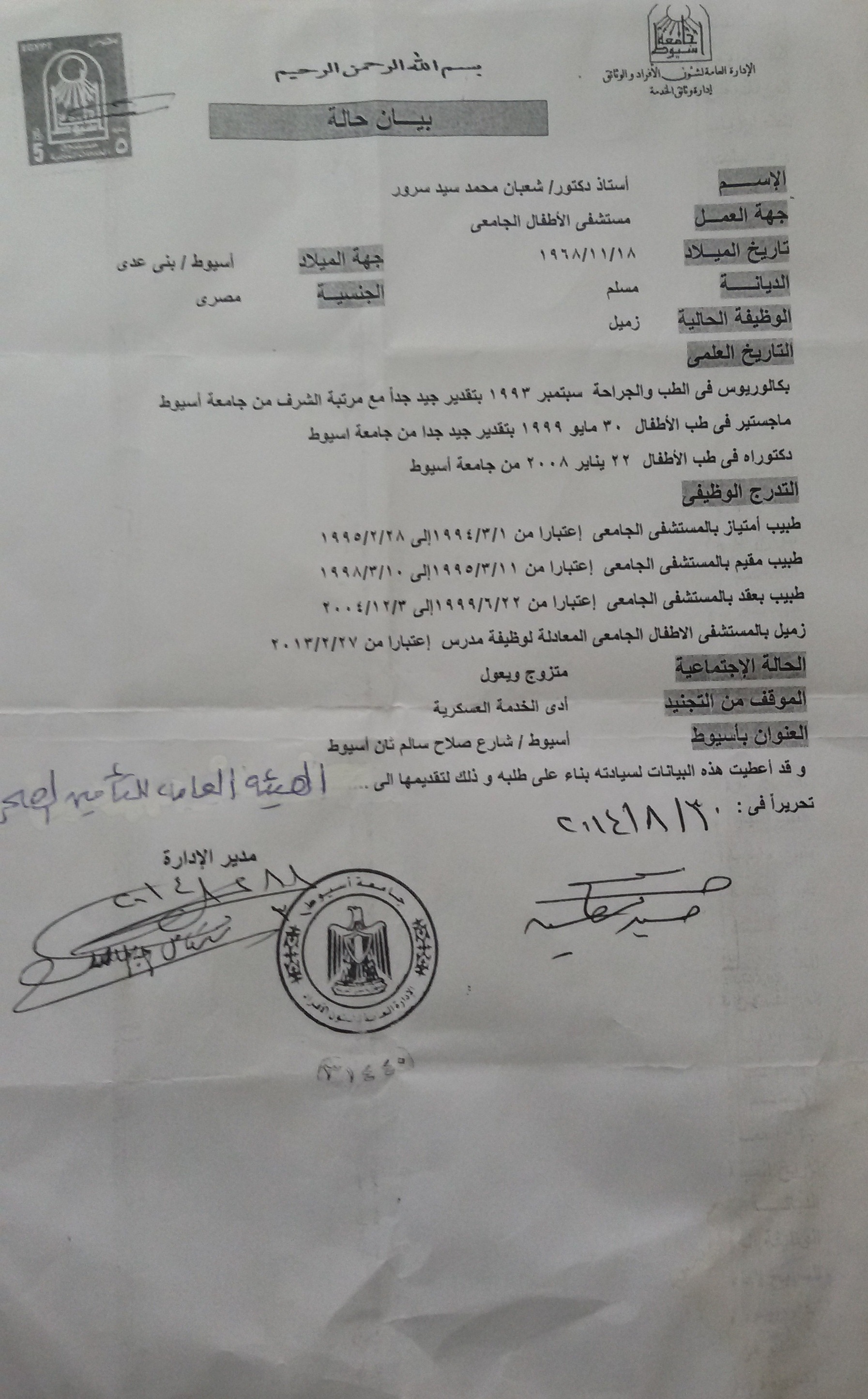 Fellow Faculty of Medicine, ِِAssiut University , 2005