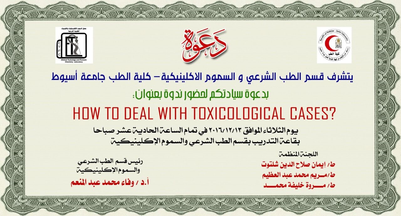 » دعوة لحضور ندوة بعنوان HOW TO DEAL WITH TOXICOLOCICAL CASES 13/12/2016