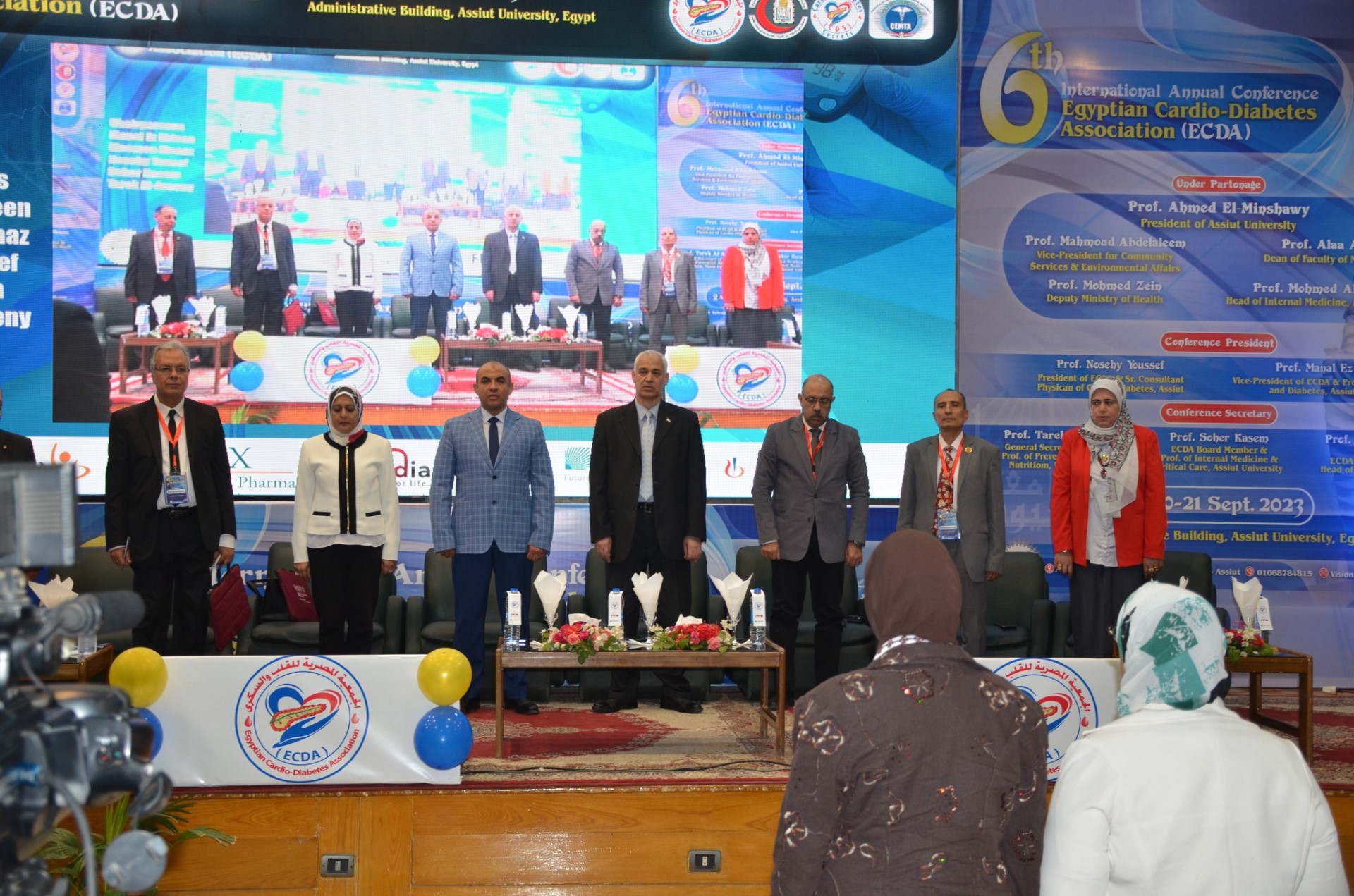 تحت رعاية الدكتور احمد المنشاوي -رئيس الجامعة والدكتور علاء عطيه عميد كلية الطب ورئيس مجلس إدارة المستشفيات الجامعية و بحضور الدكتور احمد عبد المولى نائب رئيس الجامعة لشئون التعليم والطلاب والدكتور محمود عبدالعليم نائب رئيس الجامعة لشئون خدمة المجتمع وتنمية البيئة والدكتورة أماني عمر وكيل كلية الطب لشئون الدراسات العليا والبحوث والدكتور محمد زين وكيل وزارة الصحة و الدكتور محمد اليمنى رئيس أقسام الباطنة بالكلية، ورئيسي المؤتمر الدكتور نصحى يوسف استشاري القلب و السكرى بالتأمين الصحى بأسيوط ورئيس الجمعية، والدكتورة منال عزالدين ورئيس وحدة الغدد الصماء و السكر بالكلية ونائب رئيس الجمعية، والدكتورة سهير قاسم استاذ الباطنة وطب الحالات الحرجة وسكرتير المؤتمر والدكتور مؤمن معاذ عضو مجلس إدارة الجمعية وعضو مجلس الشيوخ بالوادى الجديد واستاذ القلب والدكتور طارق العريني استاذ الباطنة بجامعة المنيا وسكرتير الجمعية وبمشاركة لفيف من أعضاء هيئة التدريس والأطباء المتخصصين فى مختلف المجالات الطبية بمستشفيات مديرية الصحة بأسيوط والتأمين الصحى بأسيوط ولأول مرة قسم القلب بجامعة الازهر وللعام الثاني ع التوالي التعاون مع جمعيه صعيد مصر للتغذية العلاجية والميتابوليزم.