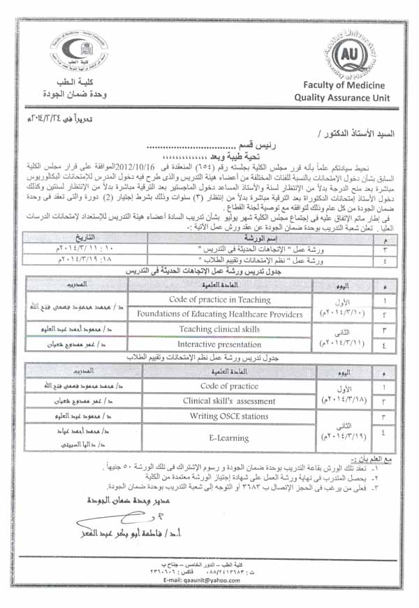 Training Courses to Medical Staff Members for Preparing to Post Graduate Exams 22 February 2014 Training Courses to Medical Staff Members for Preparing to Post Graduate Exams