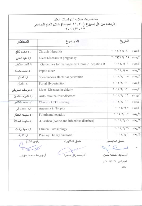 Tropical Medicine Lectures Timetable of Post Graduate 2013/2014 18 December 2013 Tropical Medicine Lectures Timetable of Post Graduate 2013/2014