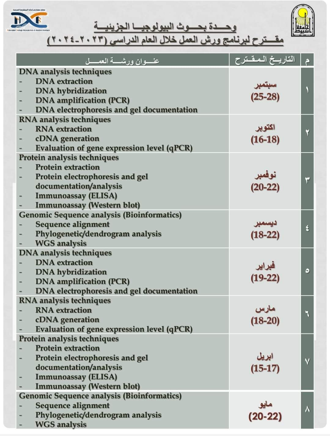 ورش عمل وحدة بحوث البيولوجيا الجزيئية